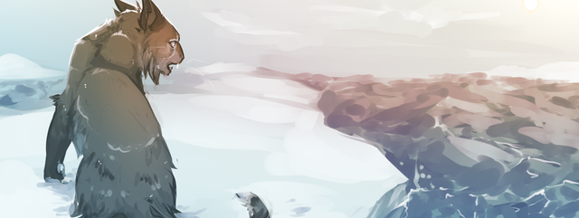 This is an amazing piece of art from the style, the detail of the ground, the fur, lighting, and sky look amazing! The way everything fits together is wonderful, and the way it looks like it was taken straight out of a movie just adds to the creativity! Where you go next with the character and the pic is up to the creator, but Ice, you have truly outdone yourself! Everyone, myself included, are looking forward to seeing what you make next! Maybe you could continue this hopeful outlook like in this pic or maybe it will be a bit darker, either way! LETS SEE SOME AMAZING ART!