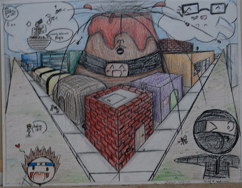 : D Hey! I just found this! I did it during my animation class. We had just gotten back from break and my teacher wasn't fully prepared, so we had a free day and I drew this (after, like, three other pictures. Thus the creativity drop) I find it kinda funny, so... hope you do too.Related content
