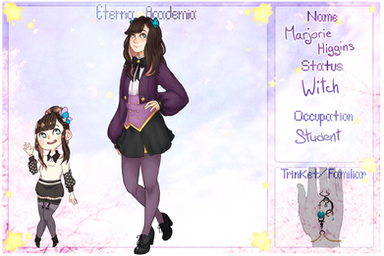 An enigmatic, airy, young(?) lady, Magda goes about life doing whatever she likes without much regard for those around her. The only constant in her life seems to be her interest in alchemy; just about everything else may change from day to day, depending on how she's feeling. She always appears to be calm and collected, the same smile ever present on her face. While she comes off friendly and welcoming when first talking to someone, she tends to keep everyone at a distance, hardly ever getting invested in the lives of those around her. She just can't be bothered unless someone manages to catch her interest.