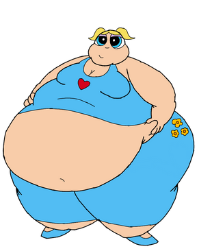 Oh my Bubbles looks so cute all bloaty and huge :3 and it's a treat to see her undies there she must be really full if sweets