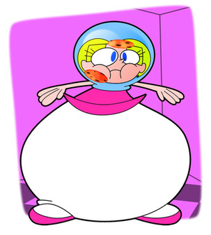 nope i meant when Dexter goes to Mars and DeeDee gets into thecargo and gets the cookie jar on her head. i dont think she gained weight but she ate so much she felt ill
