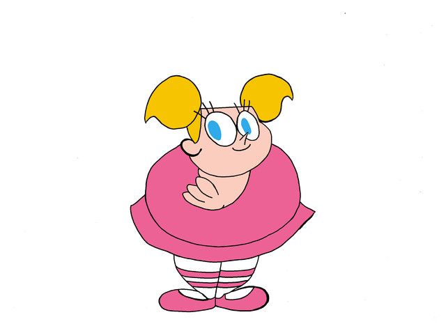 Nice to draw this character again, it was a bit risky drawing her hair yet it was all worth it.You know I had this idea of Dexter gave DeeDee a cookie which has a chemical that multiplied her weight so that she can hardly move and cause any damage in Dexter's Lab, yet even though it did work, her simple ballet dances really caused an earthquake