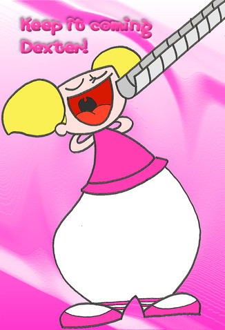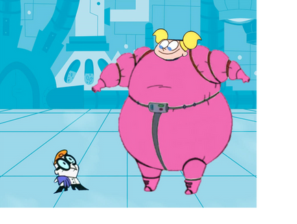 Dexter has made a formula that made DeeDee bloated so that she would be too big get inside Dexter’s Laboratory.