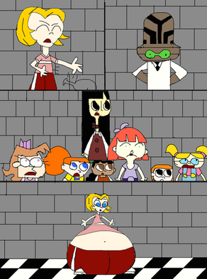After eating all the cookies in the jar, DeeDee thought she would go see Dexter and give him compliments about those delicious cookies. Though she’s having trouble trying to get to the lab due to her size and she can’t get the cookie jar off her head.