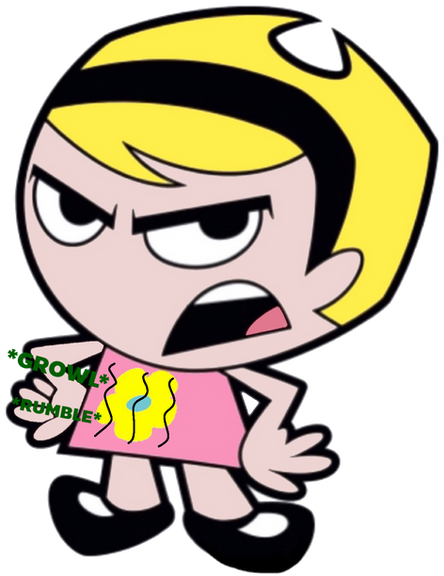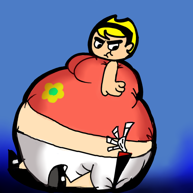 In the Billy and Mandy movie "Billy and Mandy's Big Boogey Adventure", mandy has a nightmare where she gets met by a happy, loving, fat adult version of her. She lets out a scream after a while (mainly because the adult Mandy is married to an adult Irwin). I always thought Mandy never liked being fat like she never liked being kind. If Mandy DID hate being fat and gained tons of pounds, she'd scream like a little girl (more little than her)