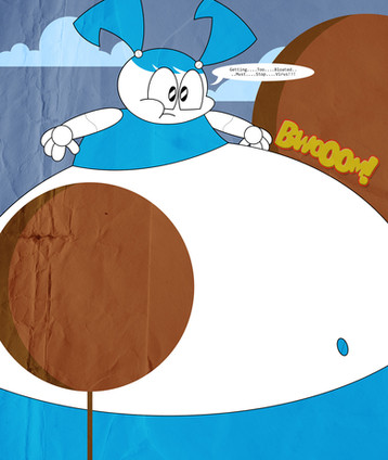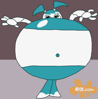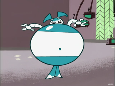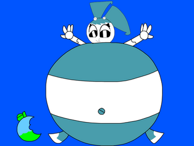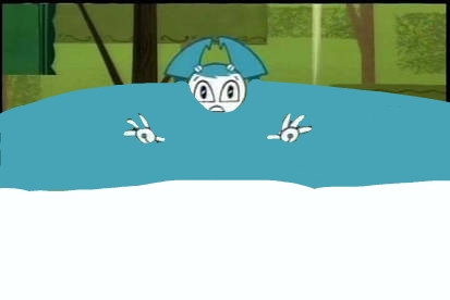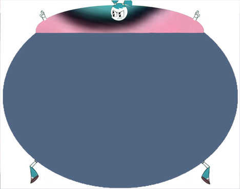 Jenny: Come on Jenny, just keep struggling!Jenny kept struggling and struggling until, BOOM! The doors Jenny got stuck through got busted. Everyone heard the explosion and saw Jenny and mistook her some giant blue blob coming out the building. People screamed in fear and ran far away.