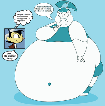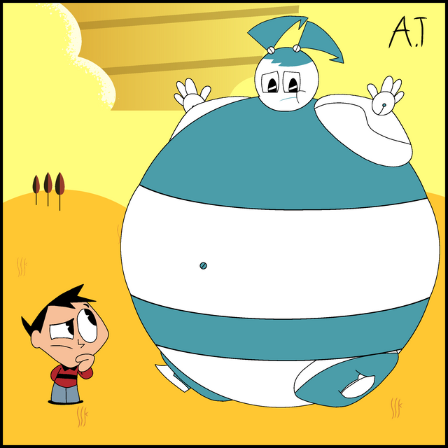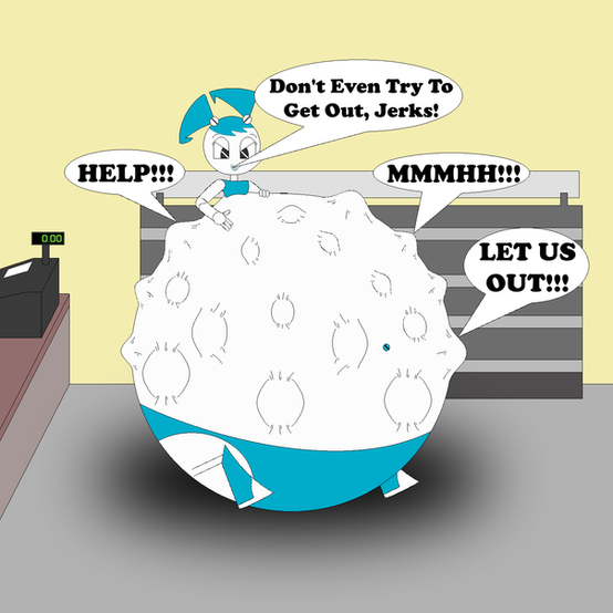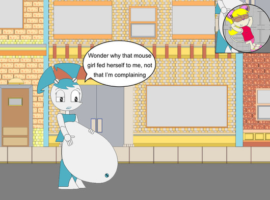 Soon after all the leaking, XJumbo9 reduced back to her (not quite) normal size and the remaining virus inside her leaked out of her bellyXJumbo9: Ahhh....Thatβs better, By the way virus, I don't think being a giant robot to conquer the world is my interest anymore, I much prefer to use my robot powers for good