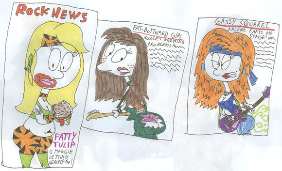 TOP STORY: Former rock star, Yumi has been chosen to launch the first BLOAToons Fatness Gym. She said this would be worth it after her former partner, Ami left to take part of a celebrity endorsement for Super SUMO SodaYUMI: And to think I was too cool for being obese. Now I'm large and even more incharge!