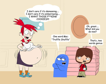 IN THIS MONTH'S ISSUE: After the 2010 BLOAToons Cookie Festival, Frankie Foster’s cookie craving has gone bad to worse. She’s been having harder times going through doors due to her massive weight and finding hard enjoying the leftover cookies from the festival without being caughtPage 01 [link]