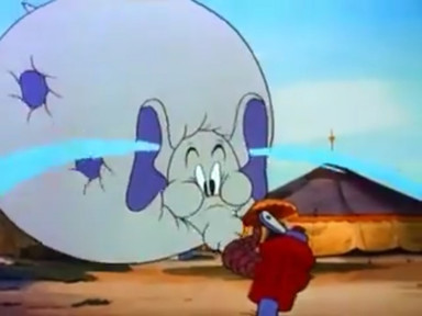 Unknown for Gloria, the enormous clown was actually Dodsworth, the elephant in disguise. Dodsworth notices there’s one end of the hose in Gloria’s loose trousers and the other end of the hose attached to the faucet way back at the circus tent. Dodsworth had a bit of a scheme; he thought maybe he would give Gloria a bath too. “A BIG WASH” to be exact. Dodsworth tip-toed to the faucet and turn on the tap to full speed, it almost fell to pieces.
