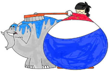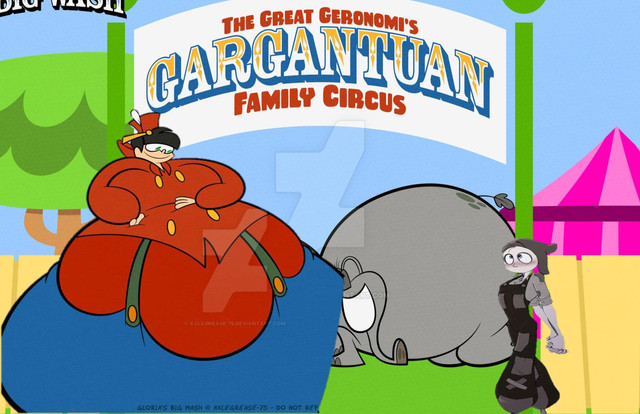 She kept on talking and talking about her massive self. Dodsworth on the other hand wasn’t too sure about Gloria in her new look, he thinks all that water weight in her uniform is going into her head, she’s really is enjoying herself being all huge and spongy. He also isn’t enjoying this scrubbing from Gloria, the new brush is really giving Dodsworth a minor itch in the back and the soapy suds are covering all over him. He was starting to feel tingling in his trunk