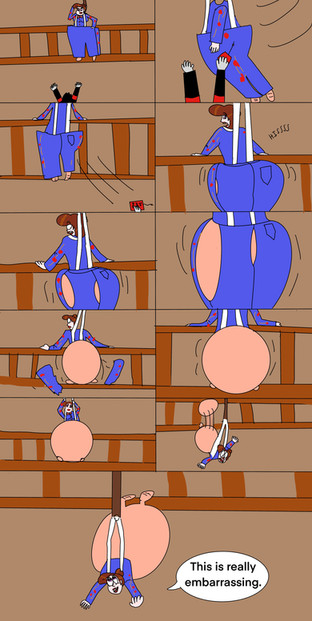 Gloria’s still in her normal size, only it’s her loose pants are starting to look bulgy with the water from the faucet already turned on. You can see the look of her face that she’s unaware what’s happening to her uniform