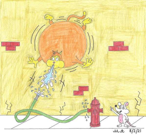 Vicky was now furious, putting the end of the hose in her pant pockets so she can spray the cats, off she went to find them. Gordon thought he was rid of that pest, but accidentally knocked the faucet on full power. Who knows whatβs going to happen Gordon wondered.Related content