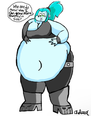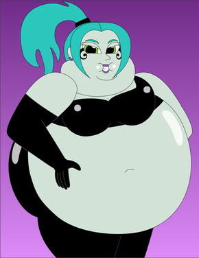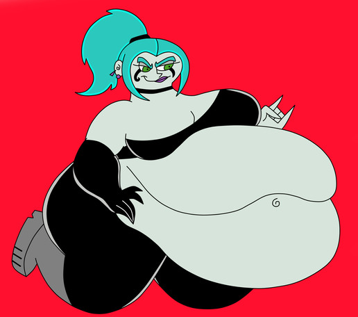 You I think there has been a Weight Gain scene in Danny Phantom, and intrestingly enough it actually involved Ember!