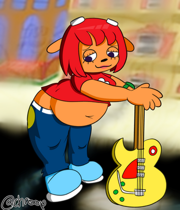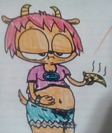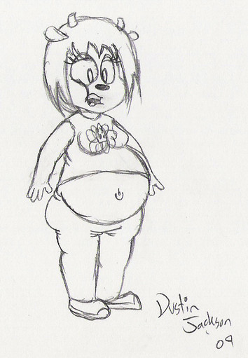 The last one I did is a chubby adult-ish version of her, an old and unfinished sketch that's not that good compared to what I've done lately, but, I'll send you a link to it in notes.