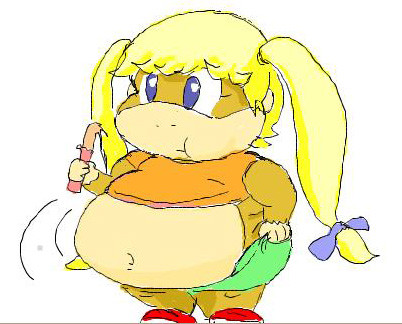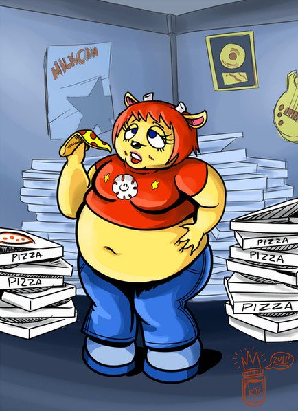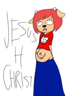 Hey, nice coloring job! I'm a big fan of those games. (Parappa and Lammy). It does happen in the game, it's a cutscene between Fire Dogs and Put These Kids to Sleep. What happens is that the fire department rewards Lammy with so much food that she's mistaken as being pregnant.