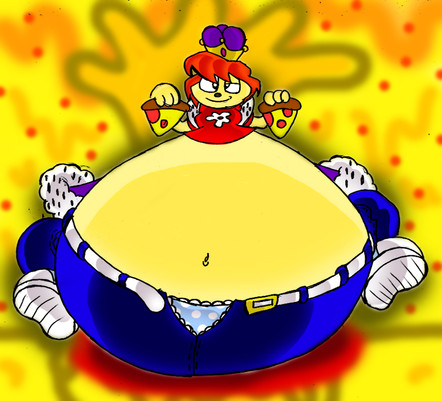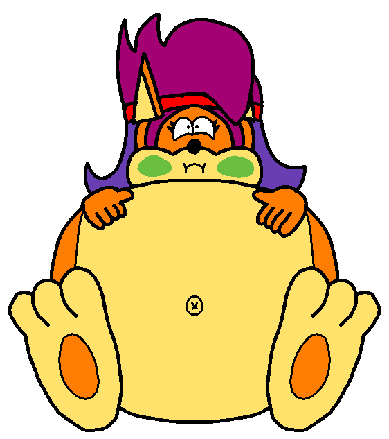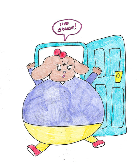 Here's how I imagine this scenario goings: Those two giant sticks of butter force Lammy to eat them, making her triple in size. Then the flo0r gives out and she falls into another dimension (Mobius or some similar world) where she lands in a huge soft bed with tentacles and wrap around her wrists. All around her are beings that resemble Sonic characters (or similar). They tell her that they've been expecting her and then they stuff her full of desserts and pump her full of ice cream non-stop, fattening her up for all eternity!