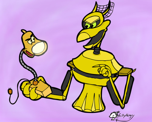 It's Gypsy, one of the robots from "Mystery Science Theater 3000" (one of the best TV shows of the '90s, as far as I'm concerned).