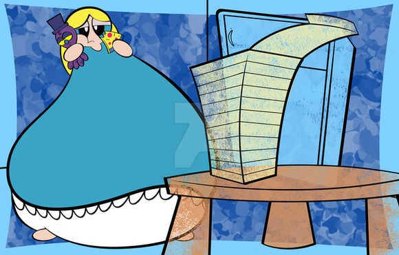 Of course, the PowerPLUMP Girls would have to put on disguises to not only blend in with the crowd, but also get some scoop from the citizens of Snacksville of any crime wavesBloated as Bernice