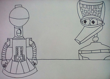 He aske me to draw one of the characters from "Mystery Science Theatre 3000"