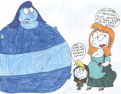 Slugworth has heard by one of his henchmen that Wonkaβs gum had turned Violet Beauregarde into a life-sized blueberry. This might give Slugworth a chance to get Wonka out of business by holding Violet ransom for Wonkaβs entire factory.When Violet gets scared, it causes the blueberry juice inside her all bubbly. This could expand her body more and making hard for Violet to run faster.