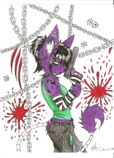 well i colord my pic...it ternd out shitty as fuck!!!! >< .......T_T; ......ah well..its colord....im a bit happy ^ ^; ...stupid ass scanner killed the hole thing tho ><;so yay my fursona is now done X3;