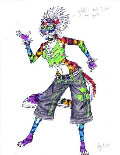 lol its very good to hear from you honey and i wish you luck wiht my fursona.(i say tht because im worried you might have a hard time with the tattoos and i dont want to over work you^^) and im working on a little rave related project for you^^.