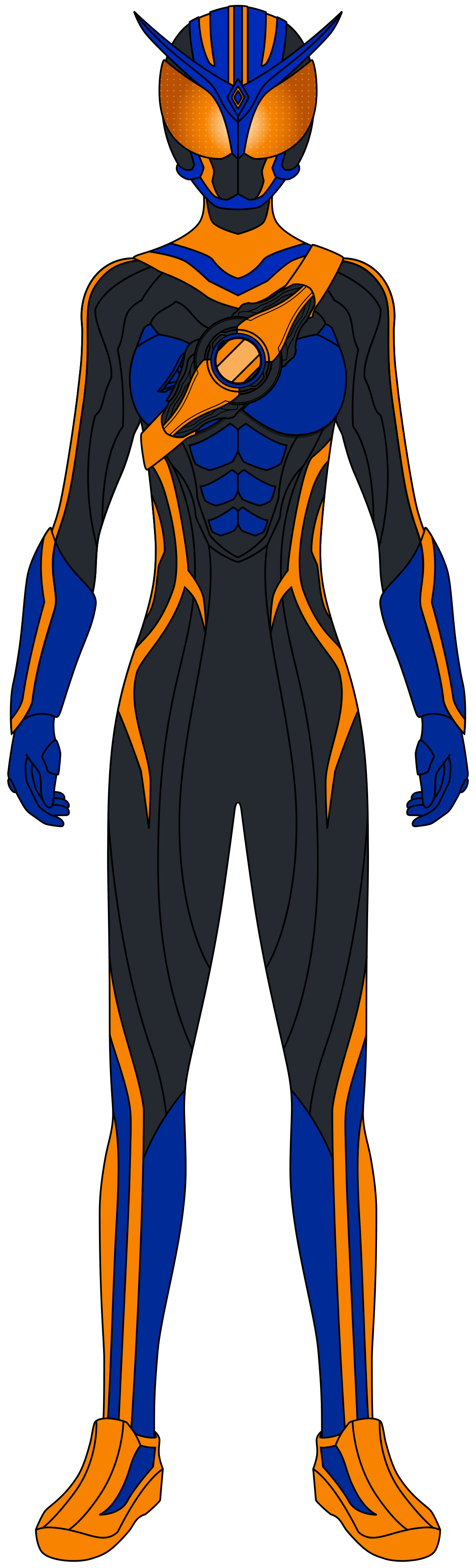 This devil has been with her host since childhood. She is like an imaginary friend who her host grew up with. She always give her host the push she need to act. She's mature and is never afraid to act, especially when it comes to her host. She's also the reason behind how she and her host became a Kamen Rider, granting her a solid form.