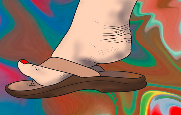 A pair of feet in flip-flops stuck in some glue, TIMES TWO. A commission forΒForgot to post this when I sent the originals to him a few days ago, but they're online now! And... if you look closely, these may be a remake of some older pieces in my gallery.