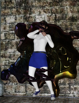 Hahah! Nothing is better to start your day off than a damsel in distress. Funny, but she doesnt seem to be too distressed in my opinion. Good work. I'd love to see more of these with maybe different textures for teh ooooze.