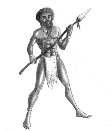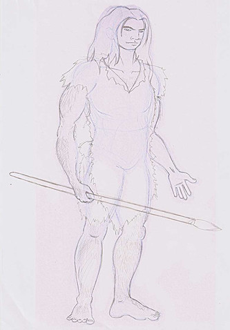 So she messaged me, saying that and, "He made up a clan - there's Steve, Carl, and Gay Stephen, and we went on saying what Stephen would look like. Can you draw it? Stephen would collect shells and have his hair all fabulous and wear a leopard loincloth while Steve and Carl would just look like typical Neanderthals."