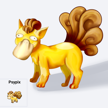 This is a Pokemon fusion I did for a contest. I have so much trouble drawing animals! Especially this pose.Related content