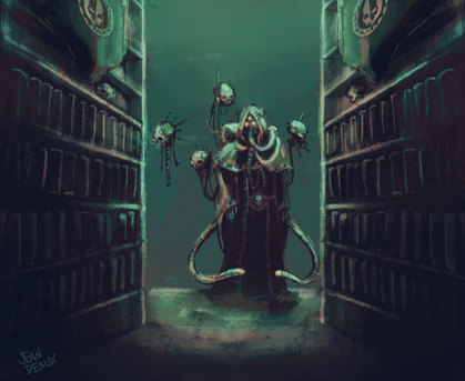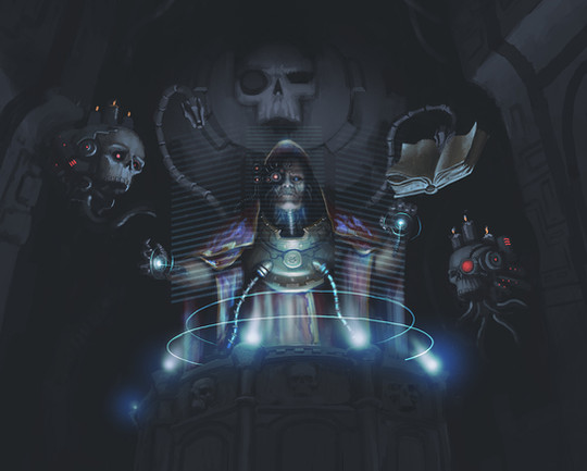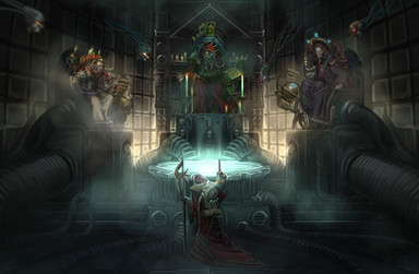 The crew of the Null Exception were "asked" by an Inquisitor to investigate the palatial compound of a supposedly heretical Arch-Medicus. Upon arriving on the disturbingly foggy grounds, the Tech Priest found a cogitator embedded in a statue with which to interface - hopefully to gain some information on the layout, however what she found was somewhat less useful much more heretical.....Related content