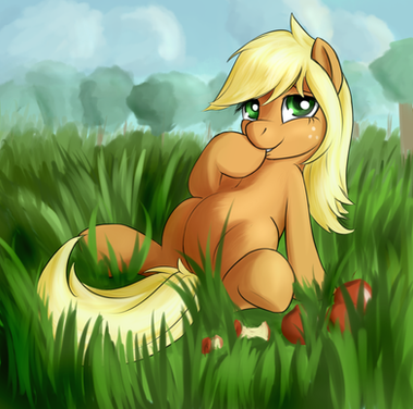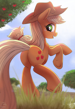 Applejack is so beautiful (esp in this pic)... everything is perfect. The shading, the expression on her face... her butt. <3 Normally if you (a person) tried to make a pony's butt that big, it would not seem natural, but the curves really, well... fit in. X3 she's just so beautiful... Keep up the amazing work! <3