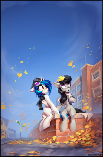 I really like how Tavi and Vinyl are lying on the autumn leaves... I also like their manes, by the way