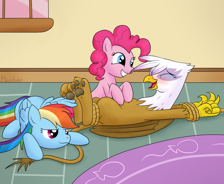 It sems to me that Pinkie looks a little scared and she's using Gilda to hide behind. XDĀ