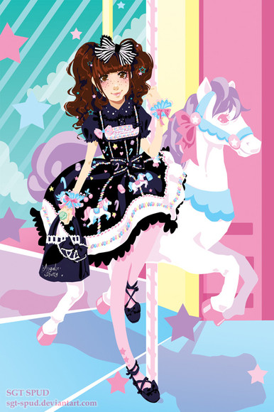 A commission for a lolita who wanted to be drawn wearing Angelic Pretty's Toy Parade printed dress.I love Angelic Pretty prints XD It's my favorite brand.