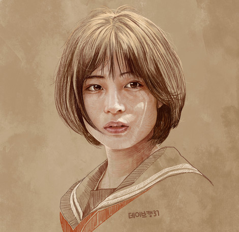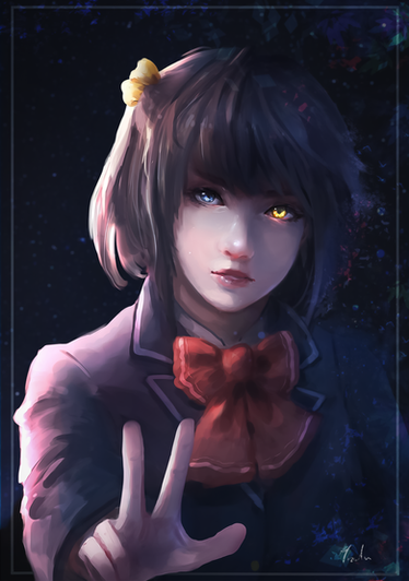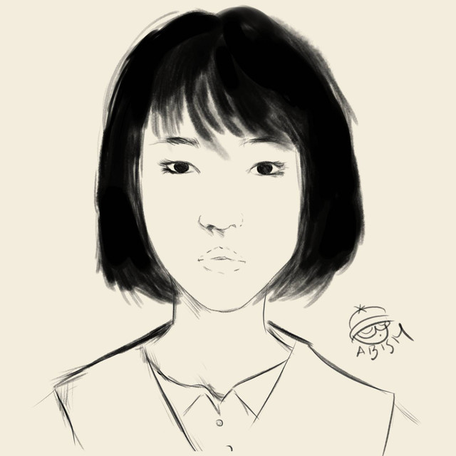 This aquarelle-like realistic drawing is almost at the minimalistic side. It provides it a clear concept that makes it easy and pleasant to watch. However, minimalistic or not, it is very well made. The eyes look so expressive, the mouth half-open letting see a bit of the teeth and the nose pointing up. It looks like a perfect asian face - no doubts there. It looks a bit fragile, the hair covering up a bit of the face and that almost-angelic look. the backpack straps and the shirt tells us it's a student in a uniform. She also looks hopeful, but a bit tired too. The hair is imperfectly perfect, with little pieces of hair disarranged, makes it look more real. The background is just a small calm storm, again on the minimalistic side. We don't need to see where she is to imagine her story. A student asian girl, so fragile, so busy with all her studying, a face so sincere. I really, really appreciate this digital drawing, even if you say it was a QUICK portrait. Congratulations on your great work!