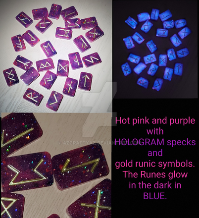 Hologram diamonds with hologram dust on a opaque red/purple and yellow background.Gold writing.