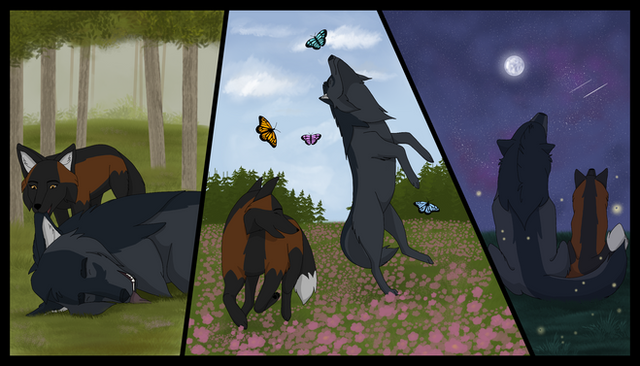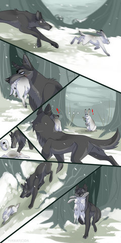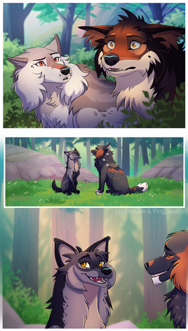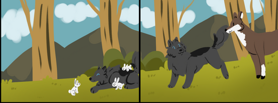 Great job, this little comics are very well done. I like the male's coat, but the puppies don't look so much like him, more like there mother.