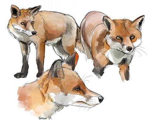 Doodled these a good while ago. Foxes are such beautiful animals with their striking orange coats.Also wanted to mention that I'm now open for commissions! You can read my latest journal post for more info, or check out my website. (: