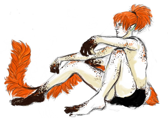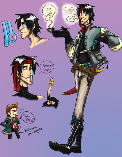 XD His so cute!! and.. Tehee, his hair is on fire. o3o *licks fingers and presses it on the small flame* C: Okay, his good.