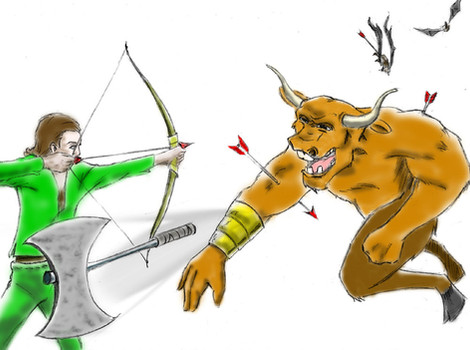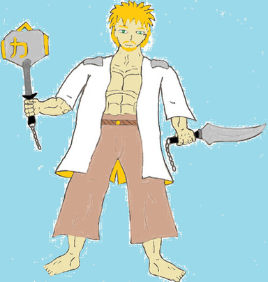 Here's another picture for the 100 pictures thing. I know there are plenty more reasonable subjects for the topic, but I just felt like drawing a monster. Yeah, I know Oni are technically supposed to use big iron clubs, but this guy just happens to be more versatile.Well, I just decided to go with some generic arena for a background. I'm pretty sure you can't rent arenas for simple duels, but let's just go with that.