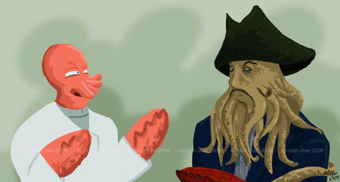 Here's another picture for the 100 pictures thing. I thought that I'd make the caption entry a Halloween entry as well. I mean, who knows what kind of crazy stuff Alair would say when he's in a costume?And there's another appearance by the Illithid from Working Hard /Hardly Working . Apparently, they are brought together by their love of linguistics, crocodile wrestling and dressing up in costumes.