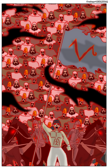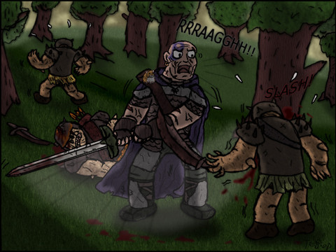 Here's another picture for the 100 pictures thing. This is another one of the pictures where the picture wanders away from the actual theme. You know, because it's the song that never ends, so it continues to play until the end of the universe. You get it? Quite frankly, this was just an excuse to draw Alair fighting a killer wolf during RagnarΓΆk.By the way, all the blue stains on Alair are from his own "blood", while the red stains are from everyone else. I was tempted to give the wolf, like, evil black blood or something, but that would have just made it even more confusing.