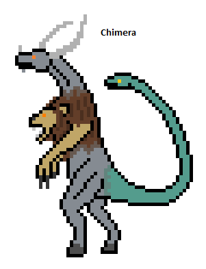 Well, I requested a little pixel figurine from of cerberus, but she had some trouble with it. So I had a go and added in some heads, changed the colours, beefed him up and added the snake tail. The orginal is over here -> [link]I suppose I should put some kind of copyright stuff here, but I think you get the picture.