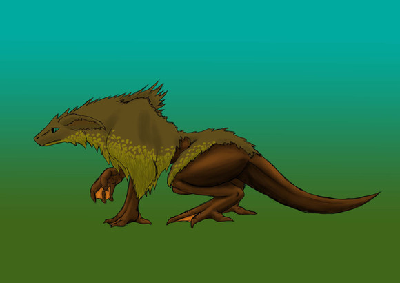 Karkas is a large animal that seems to lack interest in anything it cannot eat. Walking on stocky finlike legs, these monsters lumber about their environment in constant search of food – be it meat, bones, hooves, rotted or otherwise. The short sharp teeth tear chunks of their feed into smaller bites, though they cannot chew. It is of little difference to them if they swallow hard masses; their stomach acid is incredibly powerful and capable of breaking down almost anything they ingest. Females of the species are usually lean and muscular, but the males are nearly three times heavier due to their nearly obese bodies. Males gorge themselves with fatty foods to bulk up and impress females with their size and ability to maintain a massive weight. This not entirely for show, as the adult males genuinely need their lipid storage for the breeding season – females choose larger males because he will have a much better chance caring for his young. Once mated, females will lay a clutch of 3-8 perfectly round eggs; her mate will then quickly swallow them whole to store them in his stomach. The strong acid in his belly help break down the shells of his young over the period of about two weeks, the infant monsters are underdeveloped but immune to their father’s digestive juices. From that point on, anything the male swallows is broken down in his stomach and eaten by his young, since they lack their own acids. Eating all their parent’s food and growing steadily larger causes the male to use up his fat stores to survive, he will usually resemble the much thinner female by the end of his “pregnancy”. Once the baby monsters grow too large and aggressive in the stomach, the male will literally spit them up – they are considered on their own from this point on and left to fend for themselves.