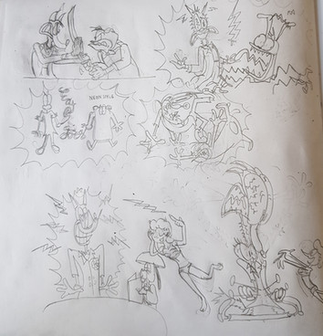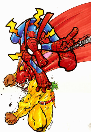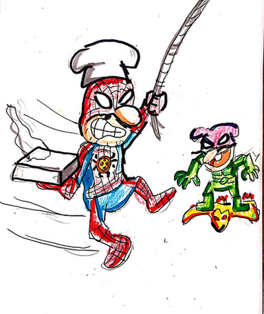 MOST AWESOMEST DRAWING EVER!!! this might be the oldest thing i can find that is still in workable condition. there is a weird bluish shape in the middle because i drew this on tracing paper(??!!!?) even though it WAS NOT traced. i was going to rule the world with this drawing.......*sigh*ren, stimpy, spider-man, and perhaps best of all.....powdered toast man. YEAH!!!