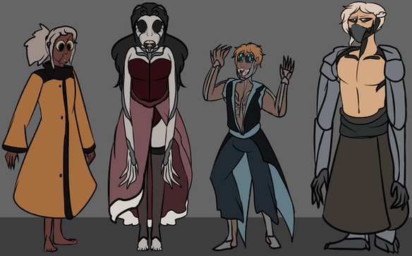 - Gray (37M). Their rather thick clothing conceals their ghoul-like, thin figure hidden underneath. As obvious from his appearance indicates, he's from the more humanoid clades. They do have some concealed neural implant-interfaces, such as the one visible poking out near their ear.