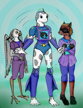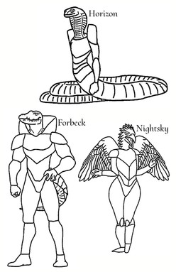 From left to right,Canid theri (24F). Having an appearance of an anthropomorphic wolf, complete with fur, elongated face, Whilst they have slightly enhanced physique and senses, they're still not too physiologically different than a human, being completely honest.